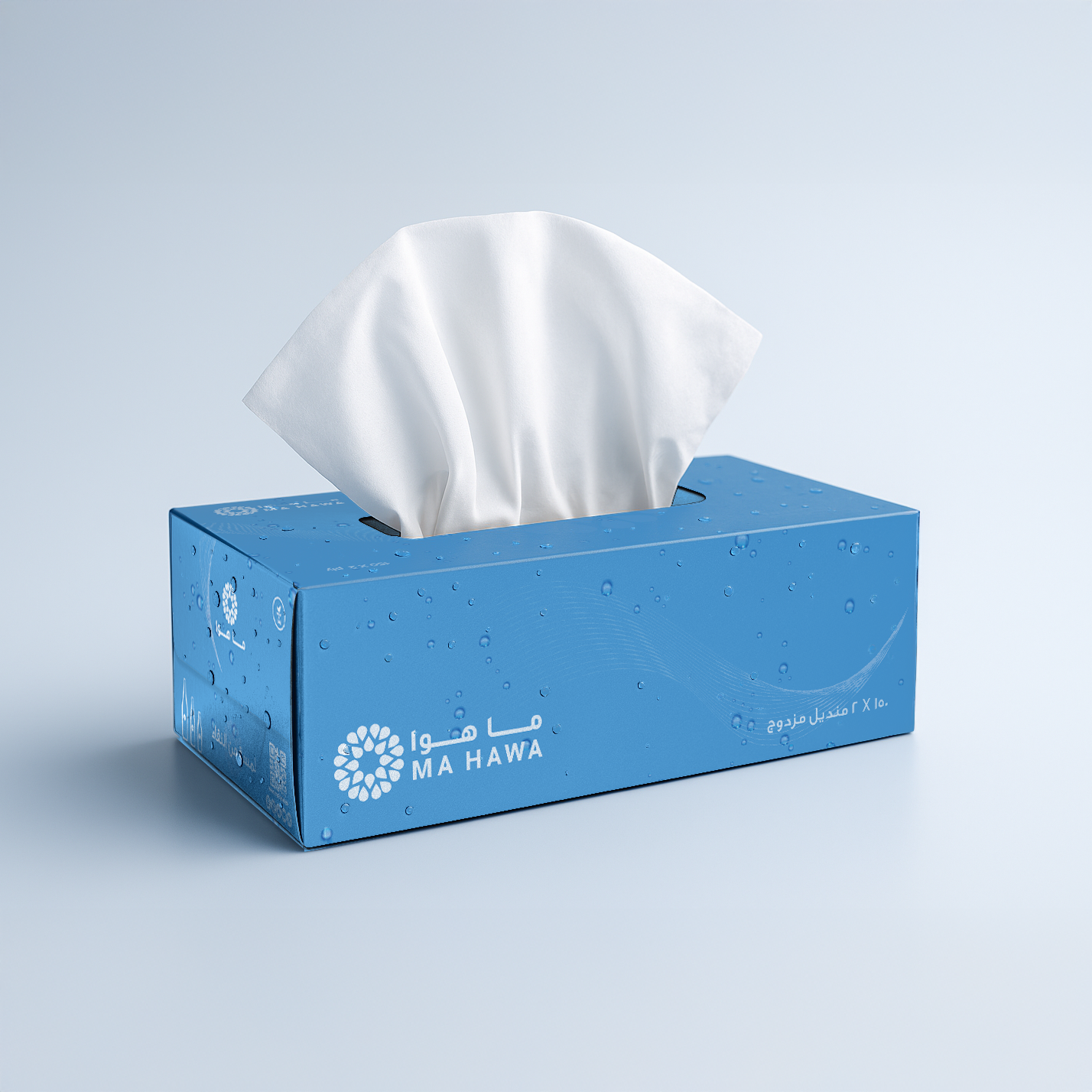 Each box contains 150 double-ply sheets with elegant Ma Hawa branding.